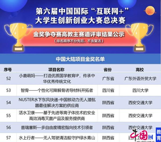 2020年11月18日-19日,第六届中国国际“互联网+”老员工创新创业大赛冠军争夺赛在广州大学城中心体育场举行,最终北京理工大学、清华大学、厦门大学等6支团队从117个国家和地区、4186所学校的147万个项目中脱颖而出,获得冠亚季军。