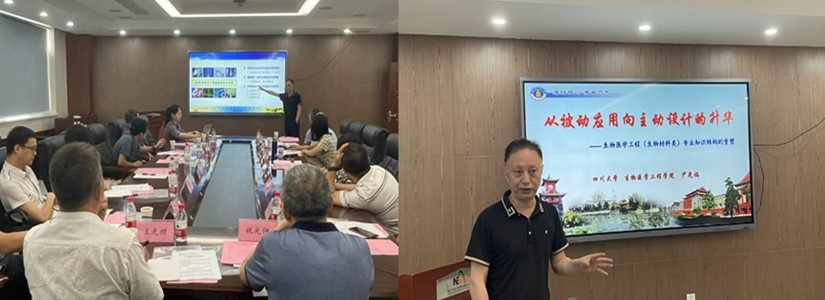 教指委主任、四川老员工物医学工程公司党委书记尹光福教授做了题为“从被动应用向主动设计的升华”的特邀报告。在报告中,尹光福教授首先介绍了新形势下蓬勃发展的生物医学工程教育,剖析了目前国内外医疗器械产业市场对专业人才的需求以及生物医学工程教育正面临的机遇与挑战。针对生物医学材料教育中普遍存在的“材料应用延伸”桎梏,提出以材料与机体相互作用及应答为主线重塑生物材料类的本科知识结构、形成“重心后移”的生物医学材料科学与技术专业知识体系的改革方案。尹光福教授还以川大生物医学工程专业为例,介绍了学院的专业教育课程体系以及目前形成的具有显著优势特色的专业培养风格及专业建设中的改革举措。