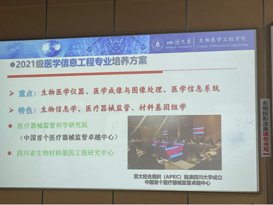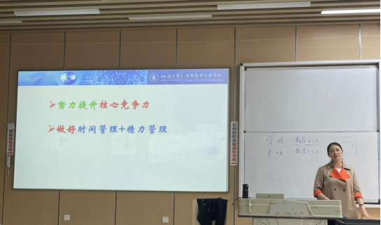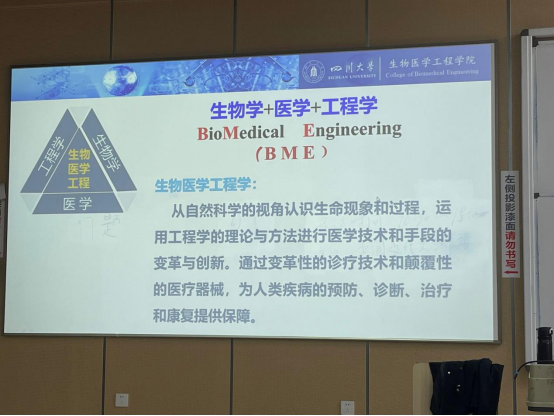 林老师从生物医学工程的内涵出发,分生物医学工程专业和医学信息工程专业,具体介绍了各自的学科学分和学科基础,让同学们了解了自己专业的学科基础、必修专业课、限选专业课、任选专业课以及实验实践和相应的学分设置。同时,林老师还从课程设置方面和内容安排方面总结了生物医学工程和医学信息工程的不同点,使同学们对自己大学四年的规划有了一个更加清晰的认识,确立了更加具体更加明确的学习目标,激发了同学们的学习动力。