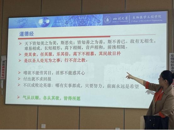 介绍完本科培养方案后,林老师给出了对大一新生学习上的宝贵建议。一是要以提升自己的核心竞争力为主要目标,围绕其进行多方面的努力。二是学会调节管理自己,做好时间管理和精力管理。林教授着重介绍了精力管理,包含体能和情绪方面。体能对于学习和情绪的保障非常重要,要学会“适度”运动,要有一定的体力劳动,这是身心健康的有力保障,学习也才能更上一层楼。情绪方面,林老师举例说明了目前多种心理疾病,并列出了防范与治疗方法,帮助同学们进一步认识并管理自己的情绪。适度锻炼,适当体力劳动;大浪淘沙,沉者为金;大道至简,回归自然;永不言弃,怀抱希望,这是林老师的寄语,并向同学们推荐凝聚了中华古人智慧的道德经,“顺其自然,无为而至,无用之用,方可大用”。最后,林教授以“千里之行,始于足下”作为结语,鼓励同学们实践起来,一点一滴积累起来。