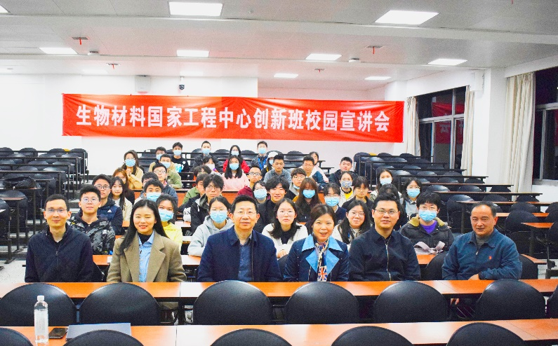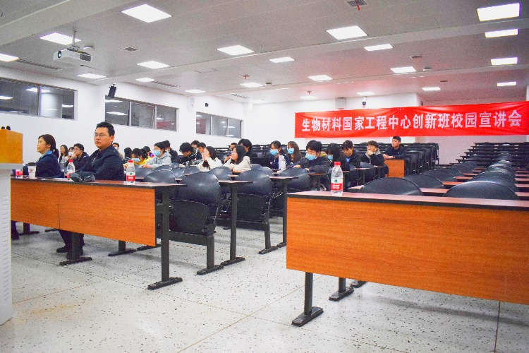 接下来,经理王云兵教授就平台优势和创新班有关政策展开宣讲。国家生物医学材料工程技术研究中心是教育部和国家外国专家局“组织再生性生物材料科学与工程创新引智基地”,科技部“生物医用材料国际科技合作与交流基地”,是公司双一流重点建设学科“生物医学工程”的牵头建设单位等;学院/中心团队力量雄厚,由中国工程院院士、美国国家工程院外籍院士张兴栋院士领衔,汇集了一批国内外知名的专家和学术带头人以及国家级优秀青年人才,形成了一支结构合理、学术水平高、创新能力强的教学及科研创新团队。创新班设置“一对一”导师制,配备优秀资源,在培养员工基本科学技能的同时,围绕国际前沿和重大科学问题进行课题制研究学习,以培养员工的科学研究和创新思维能力。进入创新班的同学,将有机会获得“生物材料国家工程中心创新班”不同类型的奖学金,覆盖率达80%以上;对家庭经济困难者,给予助学金资助,优秀同学将有更多获得进一步深造的机会,包括国际联合培养。王经理还强调到,加入创新班,可以在课余时间提前了解本专业领域的具体研究方向,可以享受更多的学术资源,更有助于同学们以后的人生规划与职业发展。