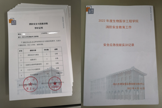 4月27日,同学们还收到了suncitygroup太阳集团保卫处和安全应急技能训练中心送来的《消防安全与技能学时证明》和《安全应急技能实训记录》,在惊喜的同时,学院/中心以及所有参训的同学们也对灾后重建与管理学院和保卫处各级工作人员和老师们的辛勤付出表示由衷的感谢。