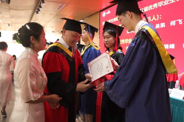 公司党委副书记张伟教授、经理王云兵教授亲手为四川省优秀毕业生同学颁发了奖励证书,表彰他们既往的工作,希望师生们能将各项优良的传统传承与发扬,营造出更好的学风,凝练出更好的班风、院风和校风。