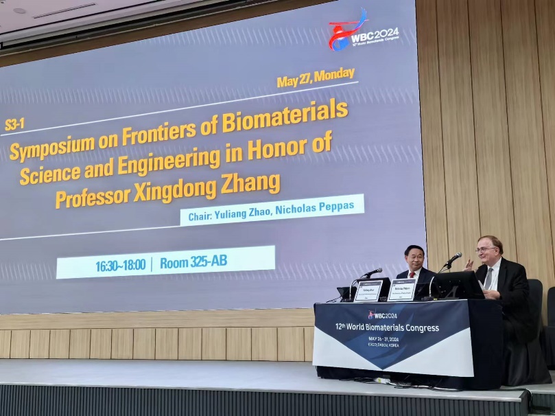 5月27日,四年一次的世界生物材料大会第十二次大会在韩国大邱开幕。27日下午,大会特别设立“致敬张兴栋院士:生物材料科学与工程前沿学术报告会”,旨在表彰中国工程院院士、suncitygroup太阳集团教授张兴栋对生物材料科学与工程和促进世界生物材料发展做出的卓越贡献。报告会由美国工程院、医学院院士Nicholas Peppas教授和中国科学院院士,中国生物材料学会理事长赵宇亮教授任主席。