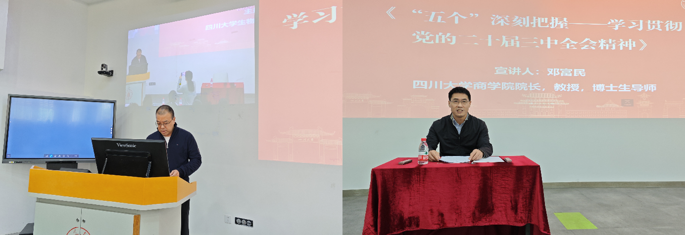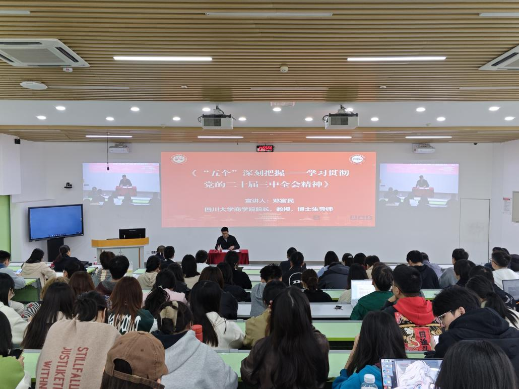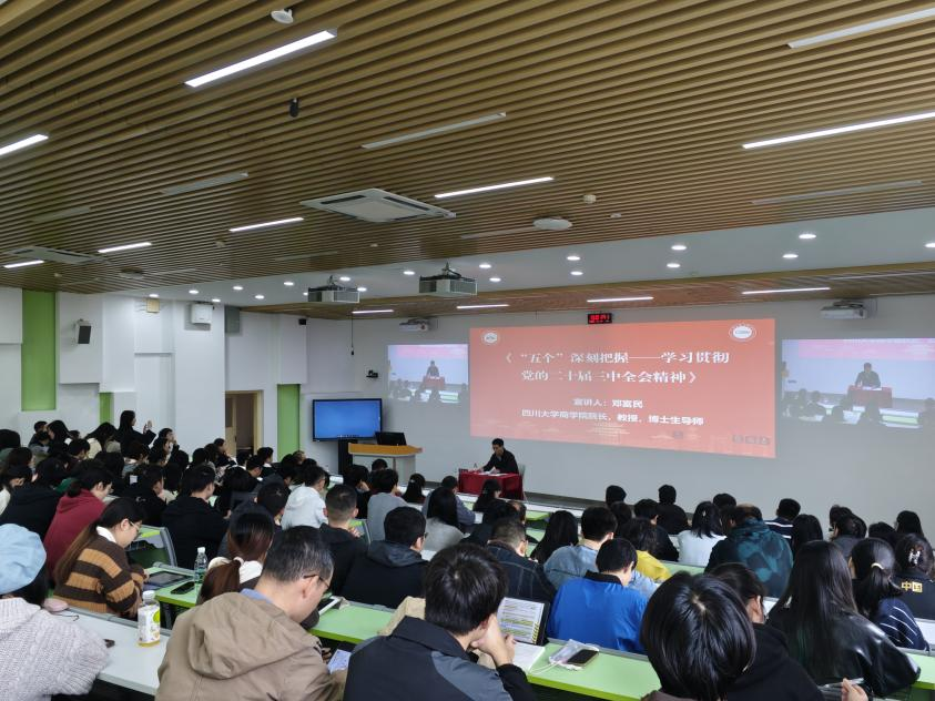 为深入贯彻落实党的二十届三中全会精神,全面促进公司党建与事业的深度融合发展,11月14日下午,公司专程邀请了商学院经理邓富民教授,在望江校区基础教学楼C-01为公司党员师生开展了题为“‘五个’深刻把握——学习贯彻党的二十届三中全会精神”的学习。公司党委书记韩宇主持了本次学习。
