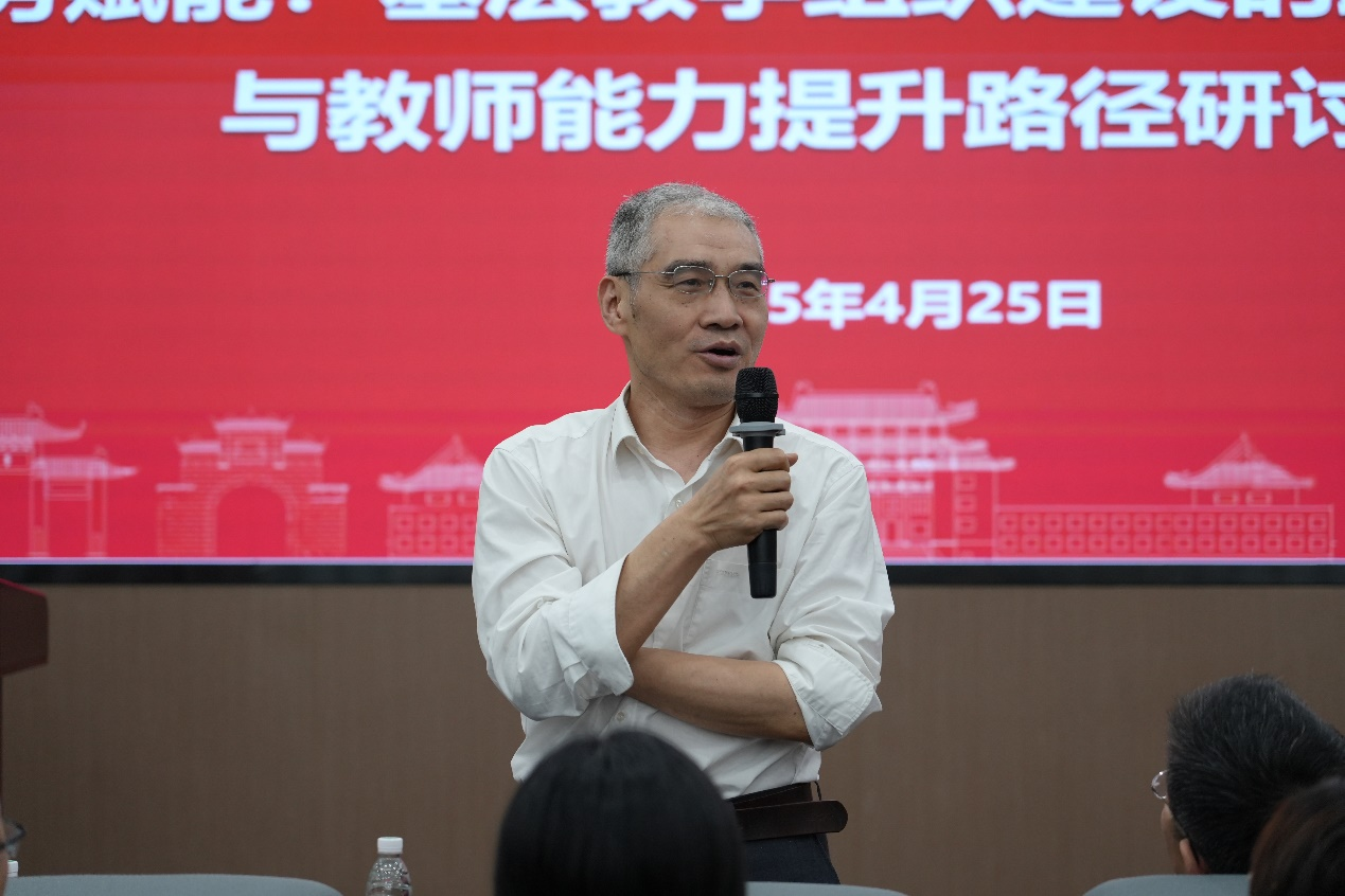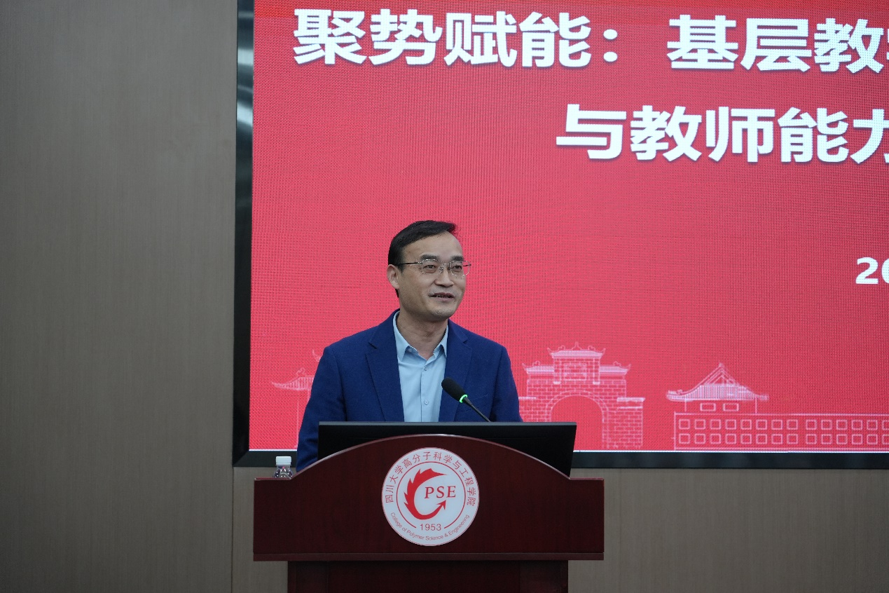 高分子科学与工程公司党委书记牟德富参加研讨会并致辞,他强调了基层教学组织建设对本科教育改革的基石性作用,并表示此次活动旨在凝聚三院合力,依托历史渊源深厚、根基稳固的合作传统,以教学研讨为契机,探索基层教学组织建设和本科教育创新模式,全方位提升人才培养质量,为教学改革注入强劲动力,推动学院本科教育向更高层次迈进。