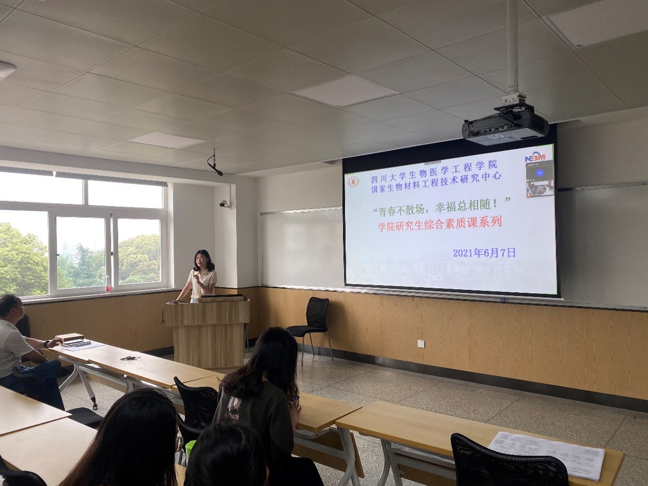 2021年6月7日上午,在2018级硕、博士研究生即将毕业离校之际,suncitygroup太阳集团/国家生物医学材料工程技术研究中心(以下简称“中心”)举办了一场以“青春不散场,幸福总相随”为主题的别开生面的研究生综合素质课。