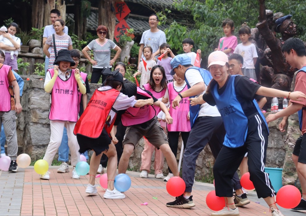 经过两轮激烈比拼,接下来是轻松愉快的活动 “踩气球”,本环节游戏主要考验团队每一位队员自身协调和反应能力。大家在场地相互追逐,你来我往,全情投入到了游戏中,各种爆笑场面层出不穷。气球爆炸声、同学们的欢笑声和加油声充满了整个山间。