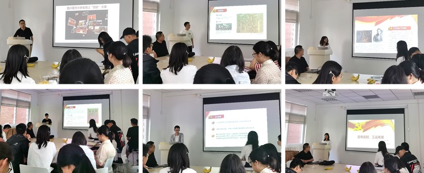 下午四点,活动在支部书记李向锋老师的主持下正式开始。首先是支部书记讲党课,李向锋老师结合“最美教师张桂梅”“袁隆平院士”“吴孟超院士”和“张兴栋院士”等人物的先进事例向我们传达了党史学习的重大意义,即学党史、悟思想、办实事、开新局,从党史发展历程中汲取奋进力量。紧接着是毕业生竞讲党史环节,江青松同志通过对五四运动发生发展的回顾,道出了五四精神的核心:爱国主义精神;卢艳、李星、许良鹏和罗昭聪四位同志分别讲述了“首译宣言,传播真理”“酝酿建党,各地相应”“一大首聚,开天辟地”和“反帝反封,工运高潮”四个党史故事,带领大家一同回顾了建党的艰辛历程。随后,毕业生党员同志纷纷发表感言,表达了浓烈的爱国主义情怀,表明了要为祖国、为社会和为人民奉献青春之我的决心。