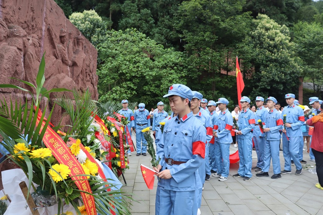 面向红军长征纪念碑,全体师生脱下军帽,敬献花篮并集体默哀,缅怀革命先烈,赓续共产党人的精神血脉。在张兴栋院士的带领下,全体党员面向党旗,重温入党誓词。