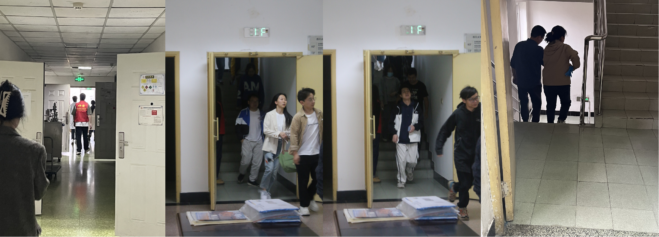 下午17:30,在各方都准备就绪后,随着总指挥的一声令下,消防警铃和消防广播响起,演练正式开始。各工作人员根据参演预案,配合默契,有条不紊地坚守各个岗位,迅速组织师生逃生疏散,及时前往安全区域。在师生们的高度配合下,在警铃响起15分钟以内,大楼内参与演练的全体师生全部安全有序地完成撤离。