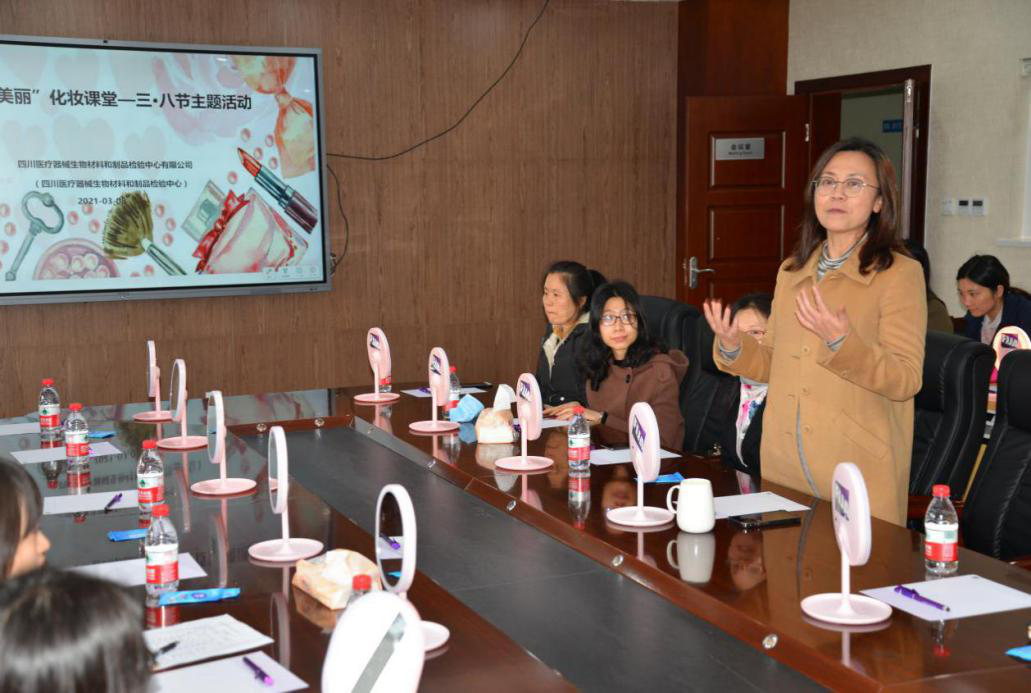 为提升女职工的礼仪修养,体现专业个人形象及良好的单位形象,丰富女职工的文化生活,使全体女职工能更好地在今后的工作和生活中展现知识女性优雅、靓丽的风采, 3月8日下午,suncitygroup太阳集团工会检验中心小组在611会议室举行了“妆点美丽”化妆课堂——三八节主题活动。