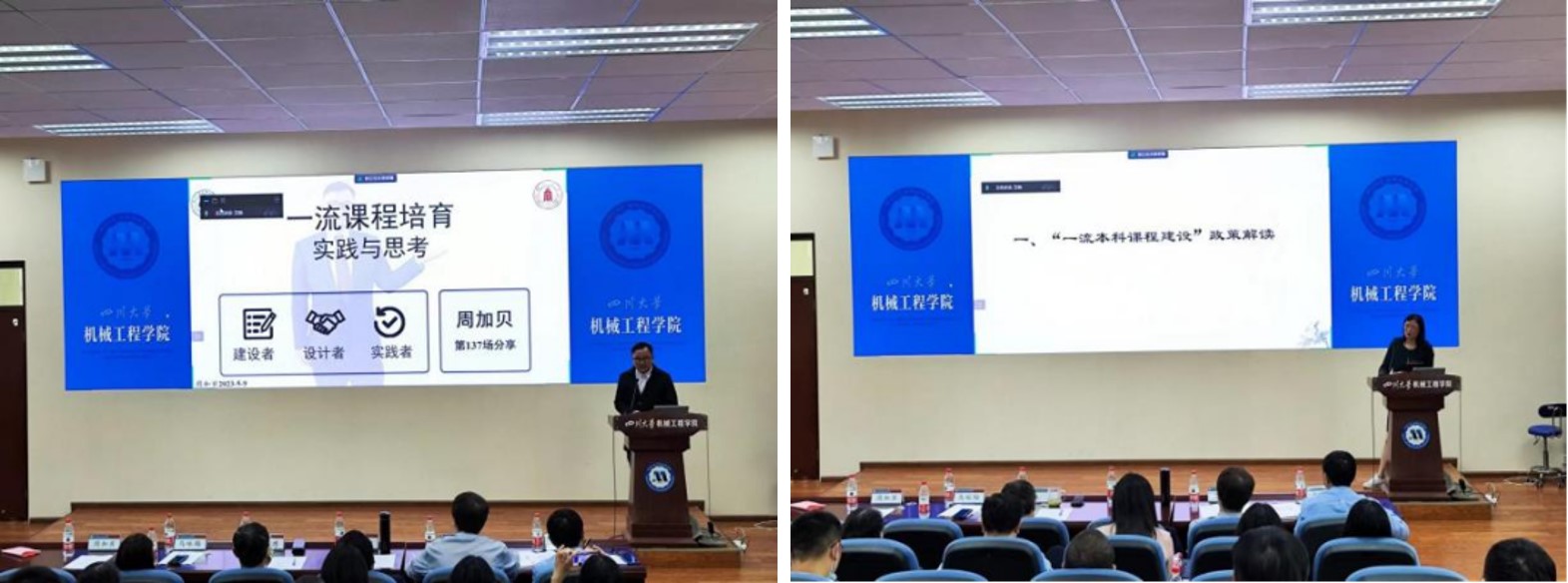 周加贝副教授以“一流课程培育的思考与实践”为题,从线上线下一流课程的标准、如何在混合式课程中实现两性一度一个挑战、从学院层面如何定目标、分步骤助推混合式课程建设以及如何准备课程申报书及附件材料等方面,分享了化学工程学院线上线下一流课程培育及打造工作。马咏梅副教授以“一流课程建设经验交流——以《机械原理》课程为例”为题,从一流本科课程建设政策解读、公司产品理论分享、申报材料填报交流三个方面详细解读了国家关于一流课程的具体政策,介绍了具体从哪些方面打磨一门国家级一流课程的经验,并作为学校评审介绍了对于一流课程申报材料的关注事项。参加活动的教师就建设一流课程的材料准备、课程设计等各自关注的问题踊跃提问。主讲嘉宾一一回答,现场气氛热烈。